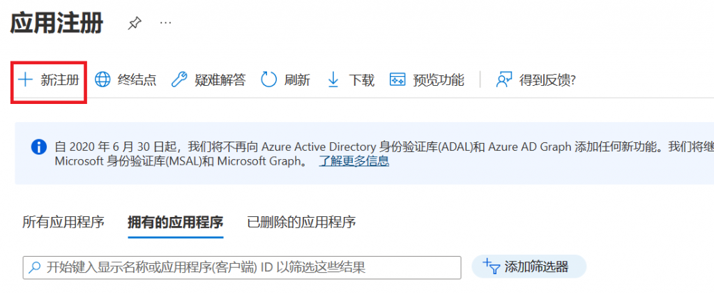 首先访问 Microsoft Azure 应用注册,登录账号后点击应用注册