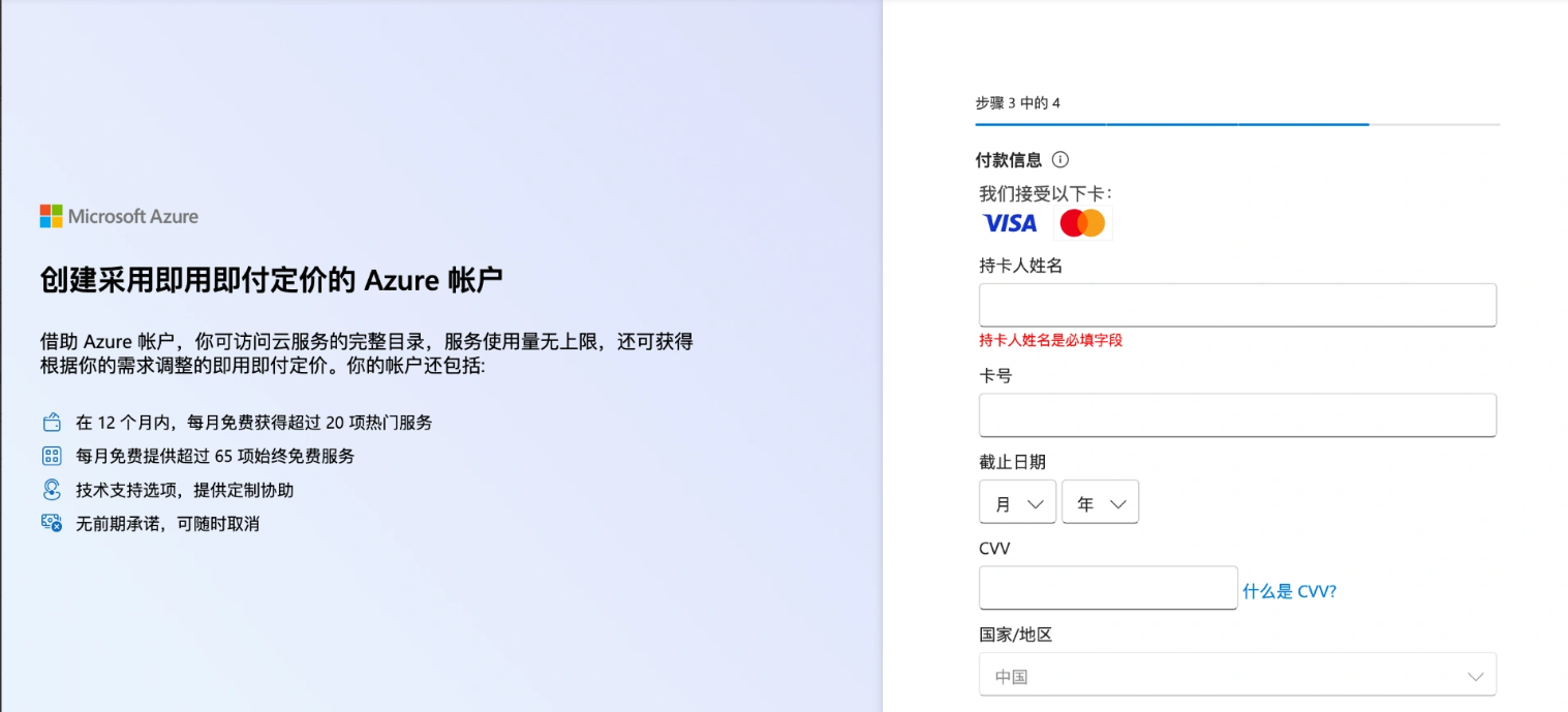 首先打开 azure.com 创建账号 会跳转到这个界面, 点击 创建一个
