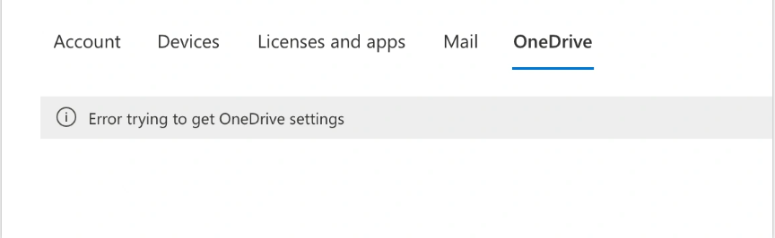 We can’t show the OneDrive settings. If this is a new user, their OneDrive might not be set up yet. Try again in a few minutes.